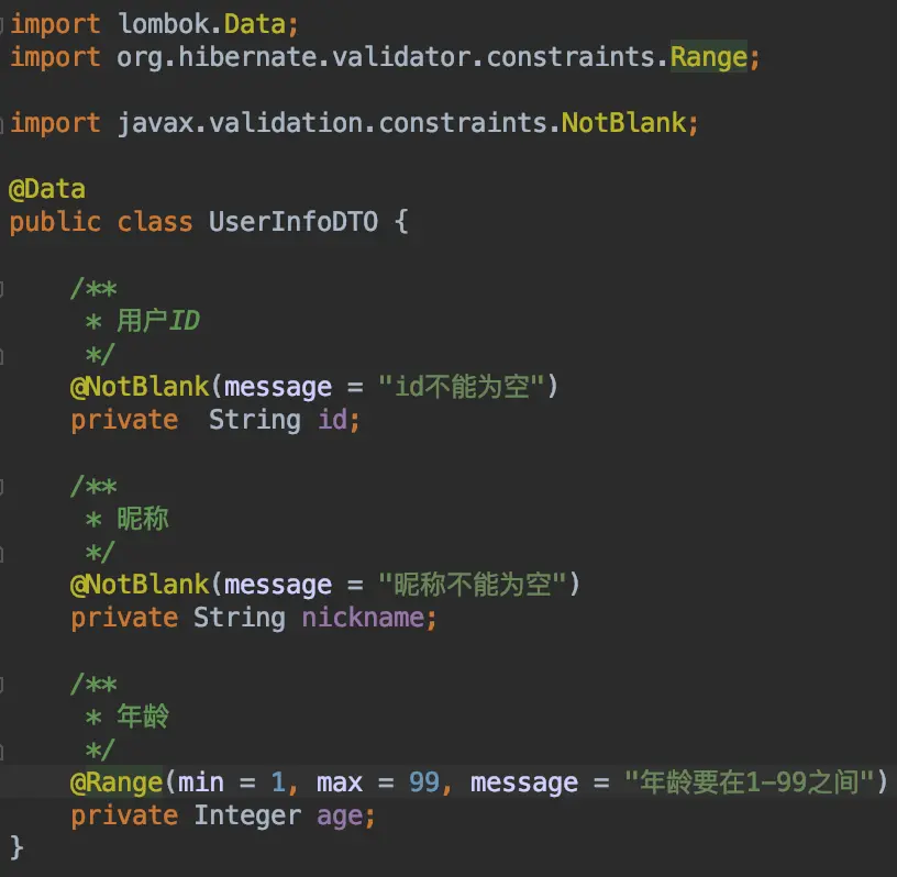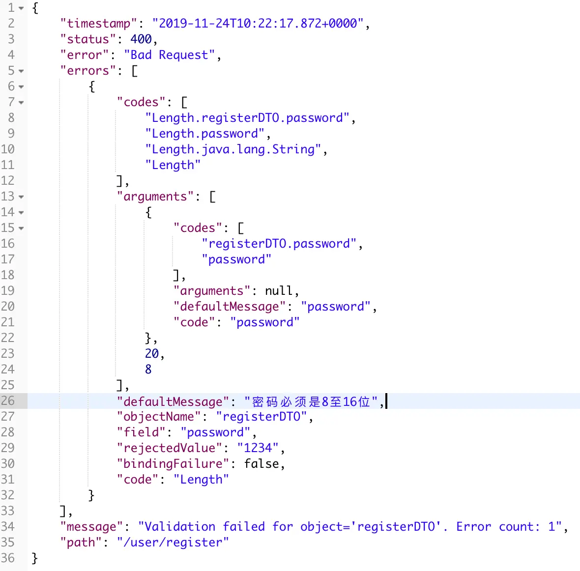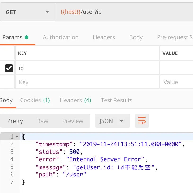 // e.getMessage() 的格式为 getUser.id: id不能为空, getUser.name: name不能为空