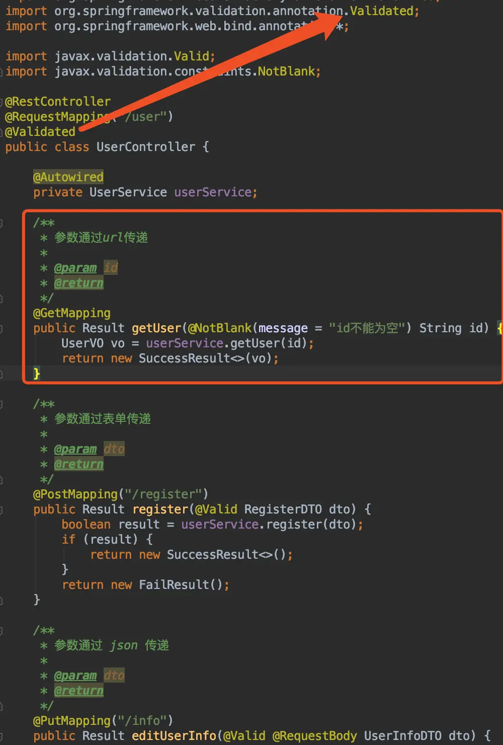 对非 java bean 参数的校验是 spring 框架“额外”提供的支持,需要用到 spring的@Validated注解