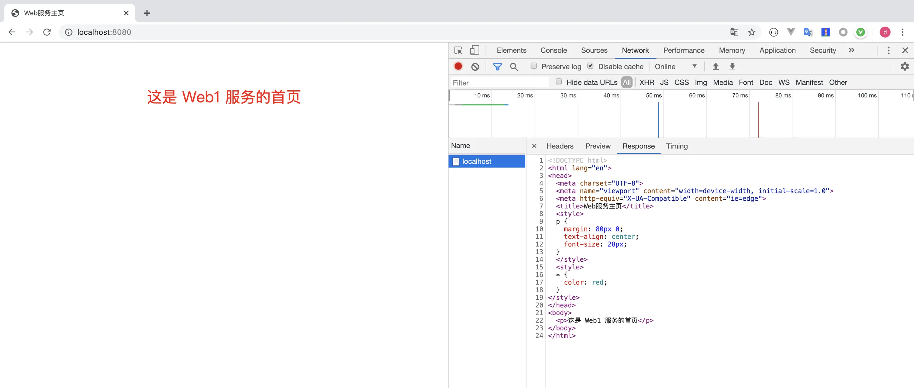我们在根目录下新建 web/ 目录,添加一个 index1.html,作为目标服务的访问主页: