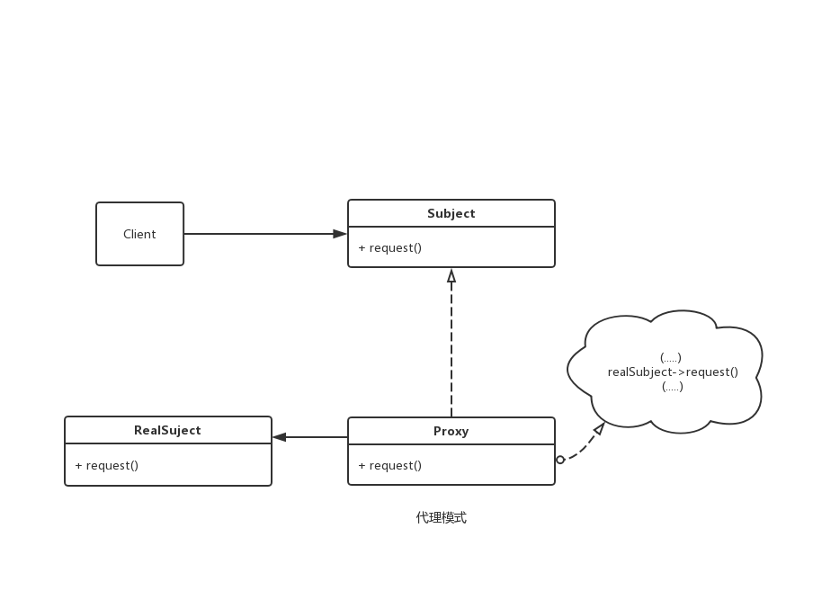 所谓控制,其实使用接口隔离其他对象与这个对象之间的交互;就是为client对象对RealSubject对象的访问一种隔离,本质上就是CLient→RealSuject的关系变成了Client→Subject, Proxy→RealSubject。 需要注意的时,代理类(Proxy)并不一定要求保持接口的完整的一致性(既也可以完全不需实现Subject接口),只要能够实现间接控制即可。