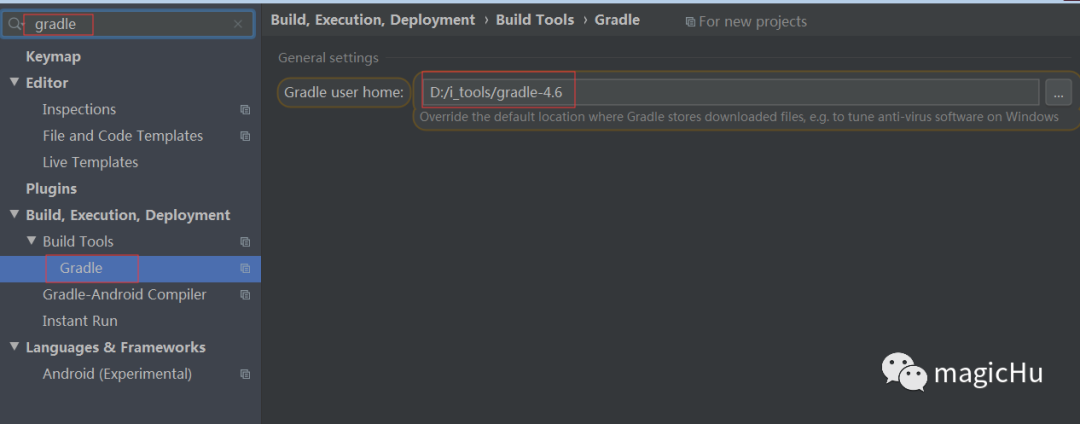 在settings中设置gradle