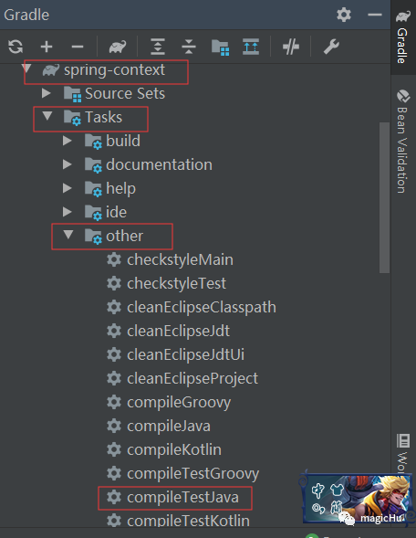 12、我们找到spring-context包下面的Tasks节点-->other节点-->compileTestJava,
