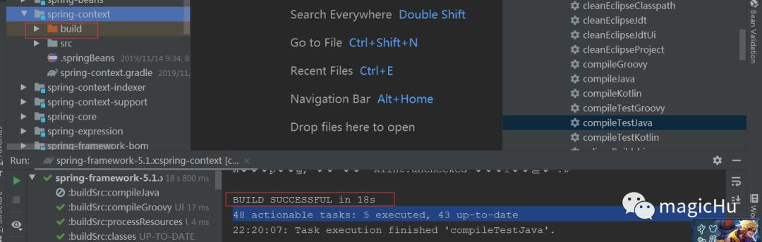 12、当spring-context包出现build目录时,就说明编译成功了。当然在编译日志中我们也能看到出现BUILDSUCCESSFUL in 18s