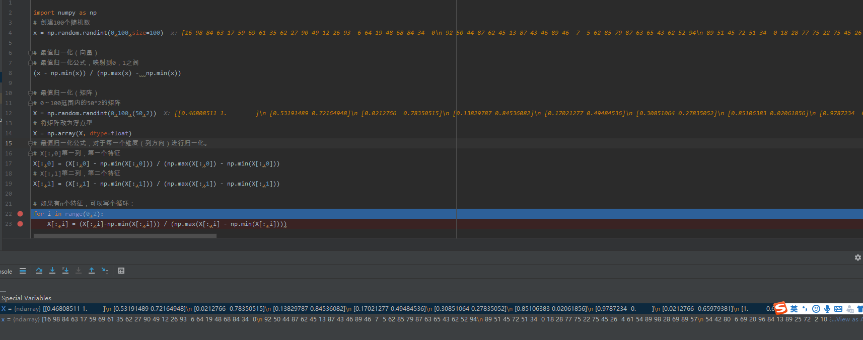 X[:,i] = (X[:,i]-np.min(X[:,i])) / (np.max(X[:,i] - np.min(X[:,i])))