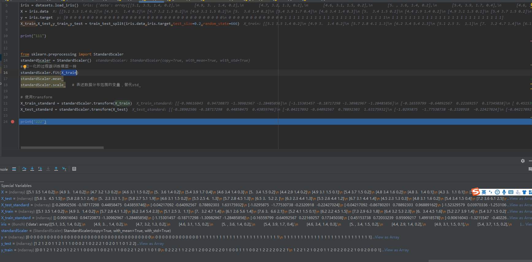 在sklearn中专门的用来数据归一化的方法:StandardScaler。