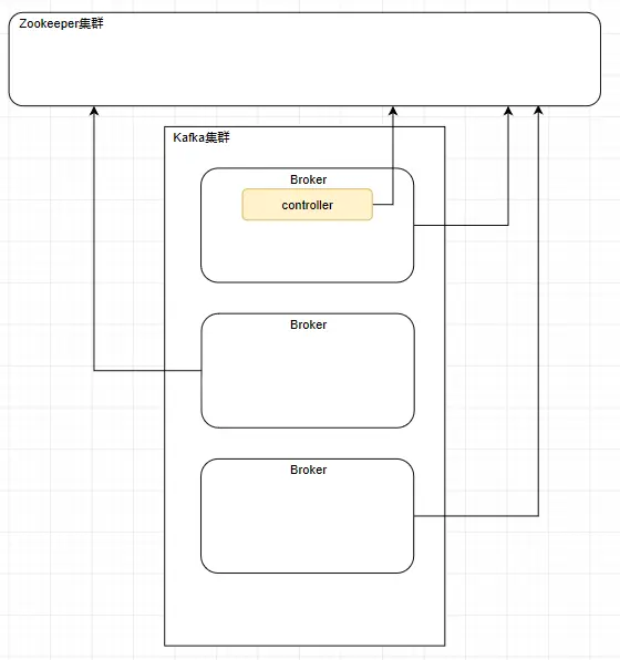 如果大家还记得第一篇的内容,就不难猜出来,接下来肯定会有一个controller和多个follower,还有个zookeeper集群,一开始我们的Broker都会注册到我们的zookeeper集群上面。
