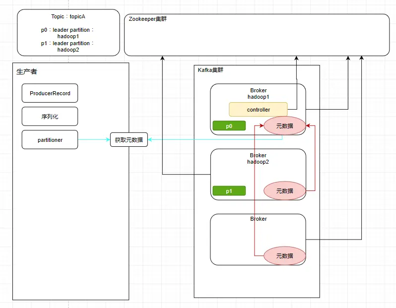 怎么知道哪个才是leader partition,只需要获取到元数据不就好了嘛。