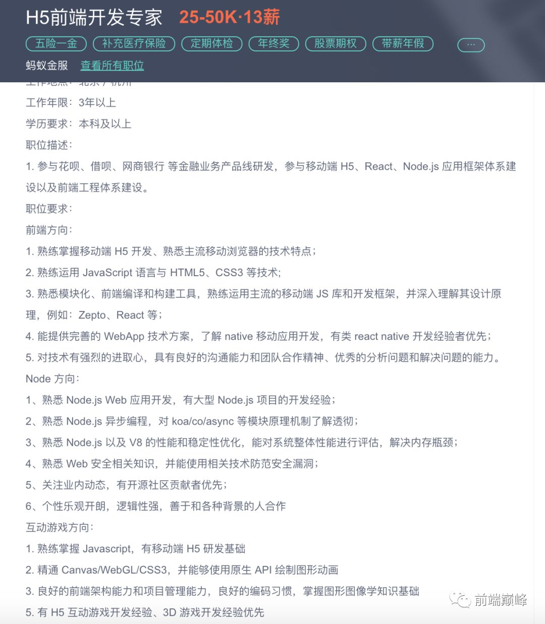 毫无疑问,这些公司都是招聘的大前端技术栈的职位,之前文章提到过2020年大前端最理想的技术栈,其实真的弄得很明白那些,出去面试基本上不会有什么问题。