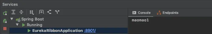 按照顺序启动eureka-server、eureka-client、eureka-ribbon、spring-cloud-stream应用的服务,然后访问http://localhost:1000/send/maomao, 然后查看eureka-ribbon的控制台可以看到,如下图显示: