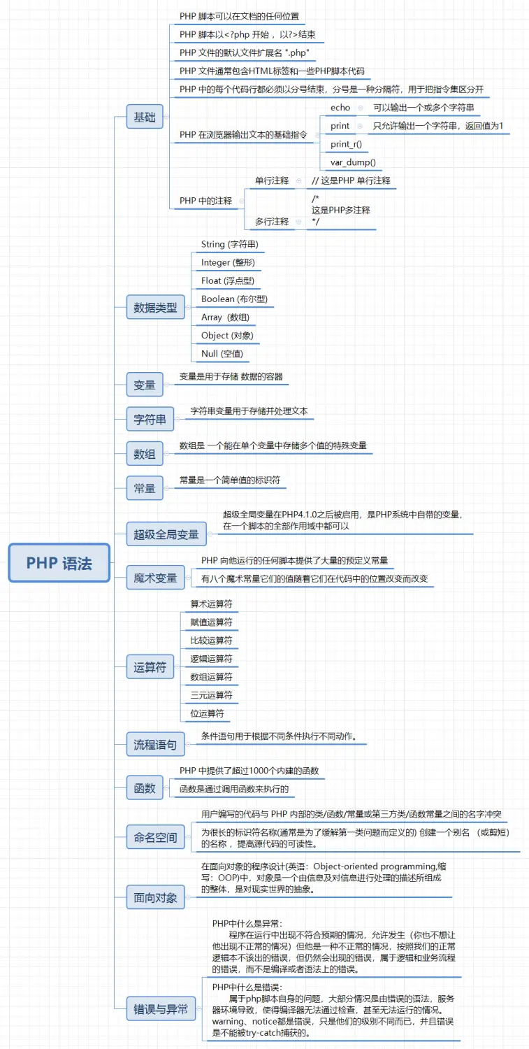 希望以上导图能够给大家的PHP学习带来一定的帮助!