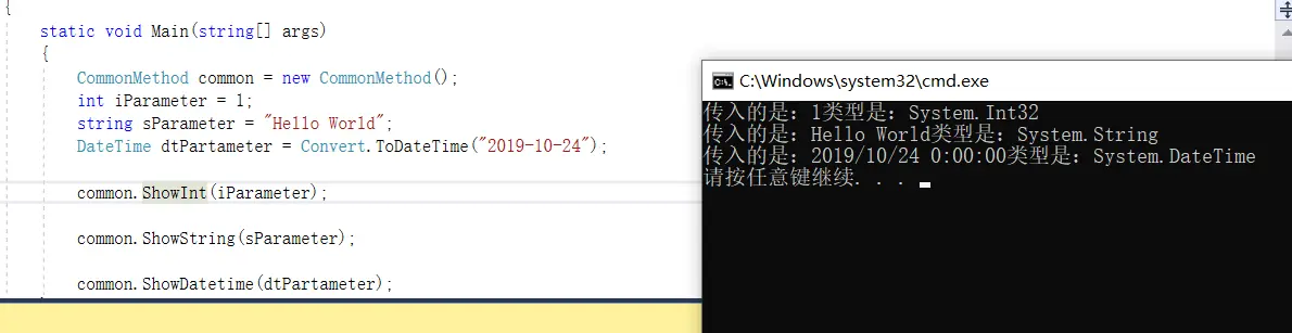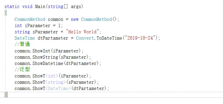 调用:commonMethod.Show<int>(iParameter)