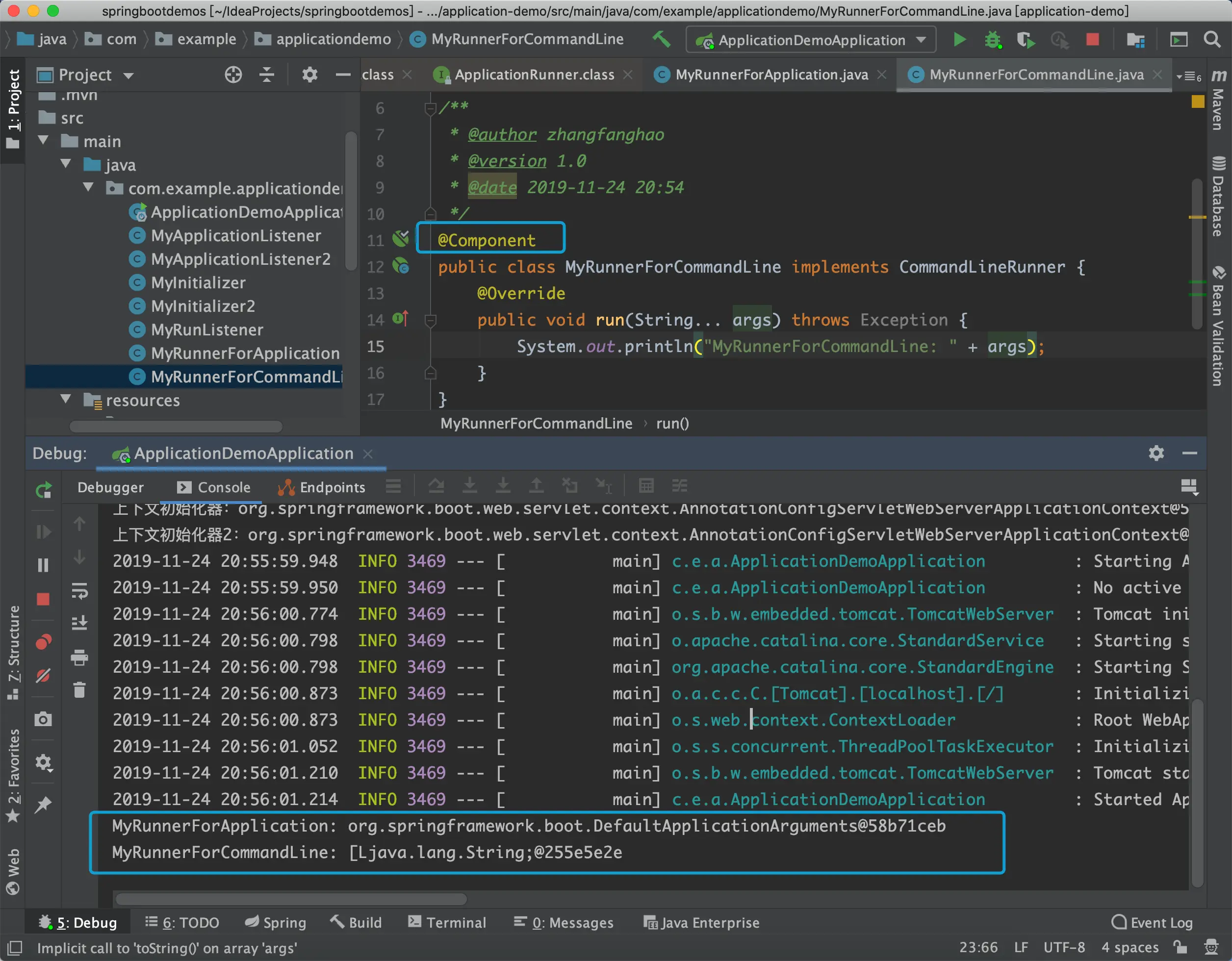 3.4 自定义ApplicationRunner或CommandLineRunner