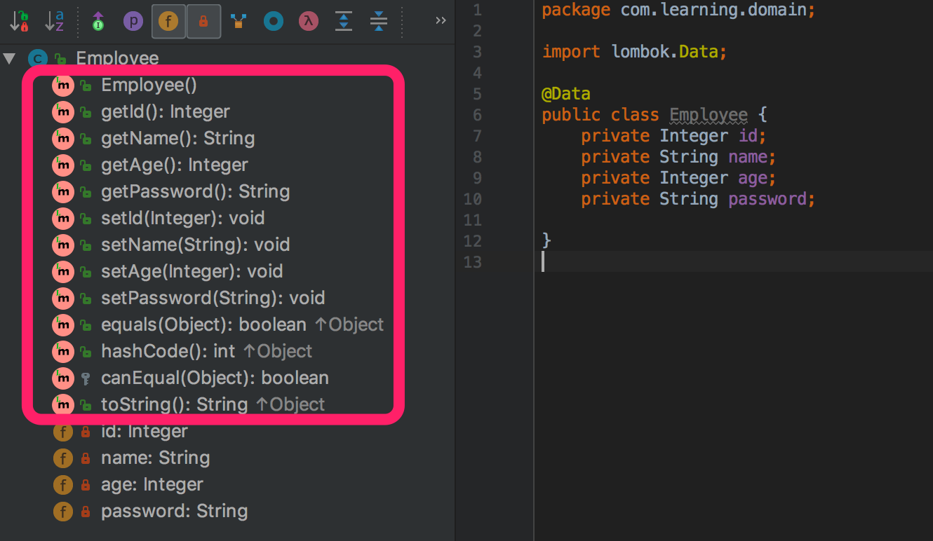 一眼可以观察出来我们在编写 Employee 这个类的时候通过 @Data 注解就已经实现了所有成员变量的 get() 与 set() 方法等,同时 Employee 类看起来更加清晰简洁。Lombok 的神奇之处不止这些,丰富的注解满足了我们开发的多数需求。