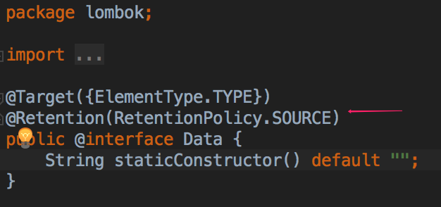 查看下图,@Data的实现,我们发现这个注解是应用在编译阶段的