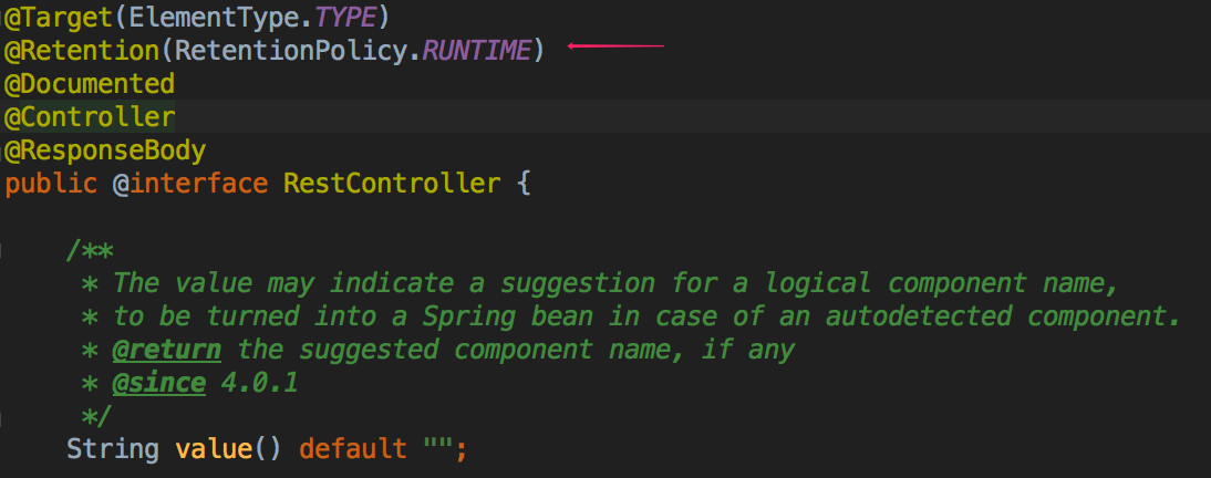 这和我们大多数使用的注解,如 Spring 的注解(在运行时,通过反射来实现业务逻辑)是有很大差别的,如Spring 的@RestController 注解