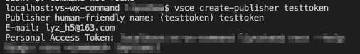 vsce create-publisher 你的名字(随便)