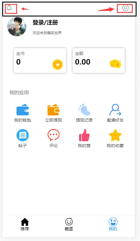在【我的】-的headerBar其作用就是为了,扩展在【我的】页面中的子页面跳转,比如【设置】、【消息】等功能模块。headerTab设计具体如下: