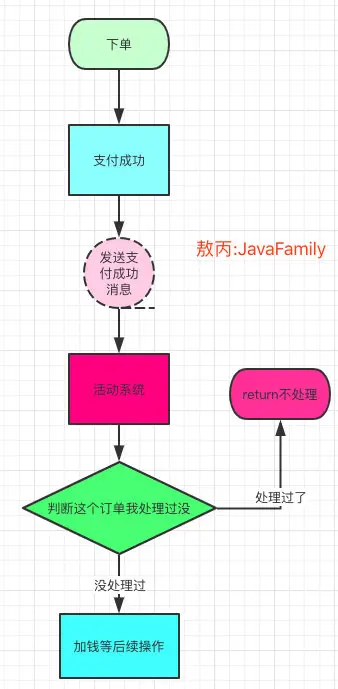 那这个时候如果别的系统这个订单号消息重试了,你是不是又进来了,你去查询流水你发现没流水你以为没加,你执行加钱的操作,结果那条延迟的也好了,是不是就加了两次。
