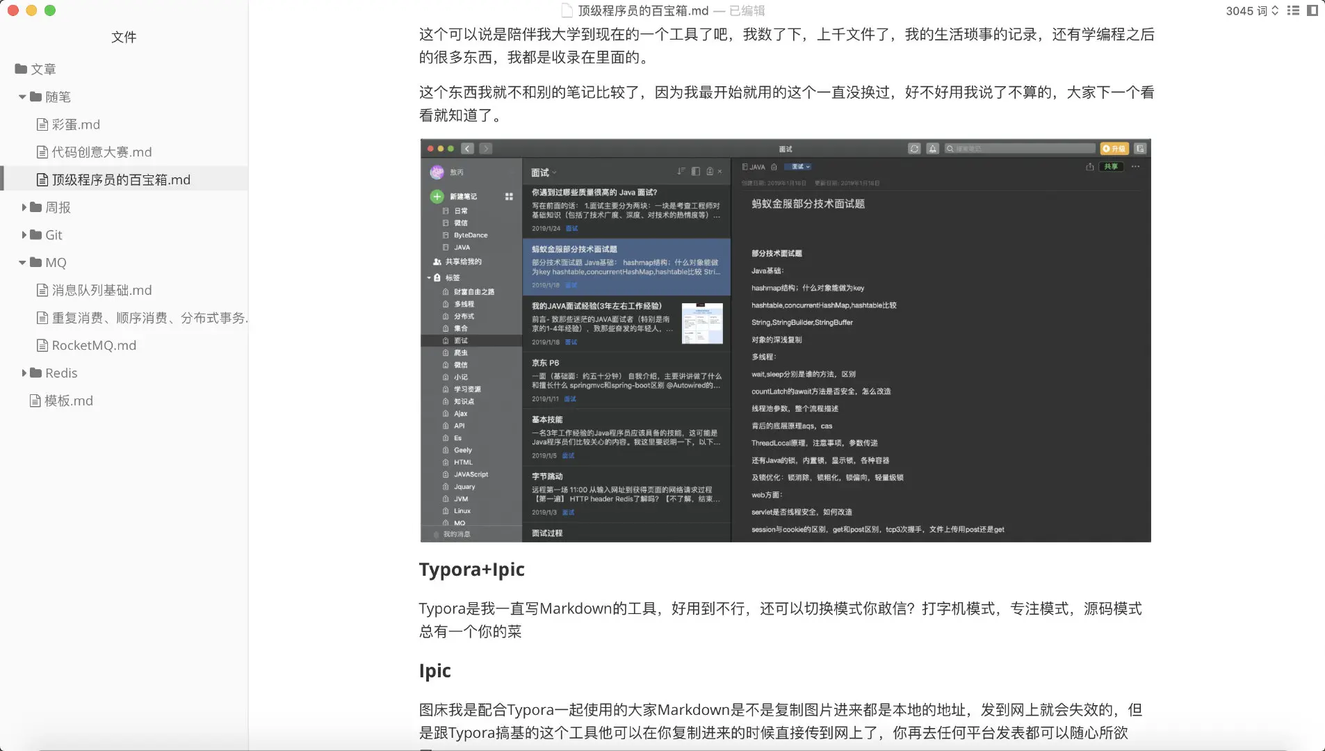 这个可以说是陪伴我大学到现在的一个工具了吧,我数了下,上千文件了,我的生活琐事的记录,还有学编程之后的很多东西,我都是收录在里面的。