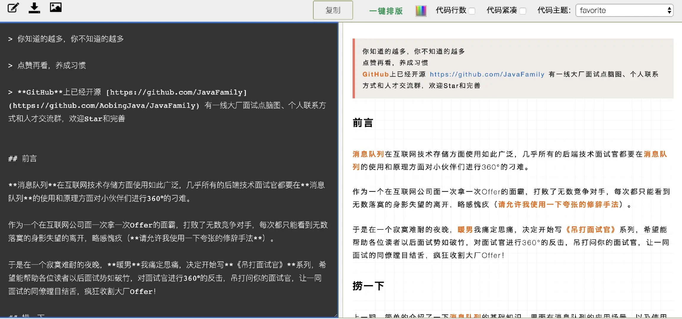 我写完也是在这里面进行排版然后发出去的,排版要花好久,忍不住给帅丙点赞。
