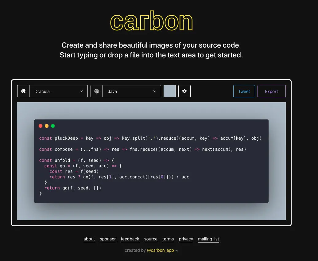 - 官网地址 :carbon.now.sh/