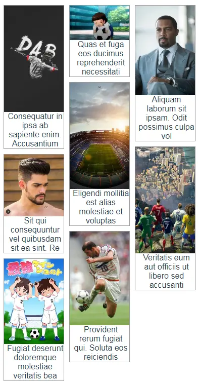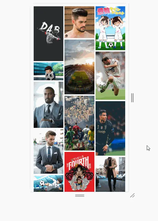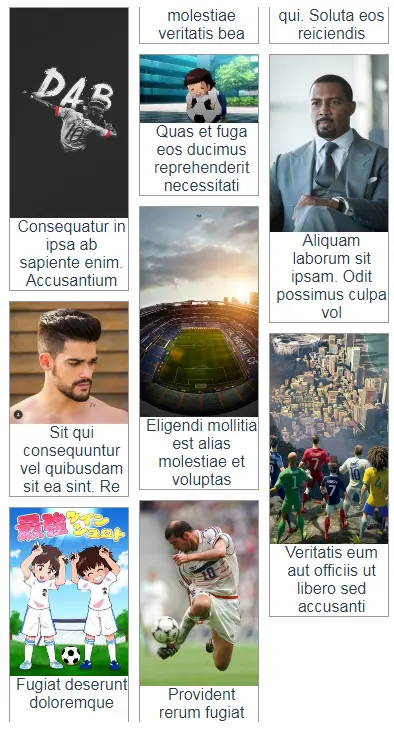 当然了,在实际情况中,瀑布流更多的是为图片的展示而服务的,并且由于图片是异步请求加载,只有在加载完成后才能获取图片的真实宽高,所以不得不使用JS来动态将单元格高度进行拉伸。