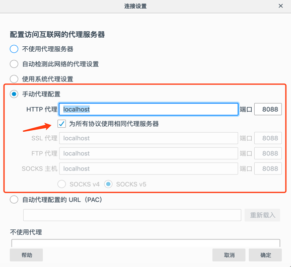 设置浏览器端口,你要打开浏览器,将浏览器的代理服务器地址指向 http://localhost:8088