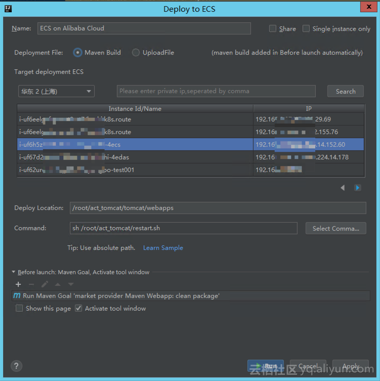 Deploy Location :输入在 ECS 上部署路径,如 /root/tomcat/webapps。