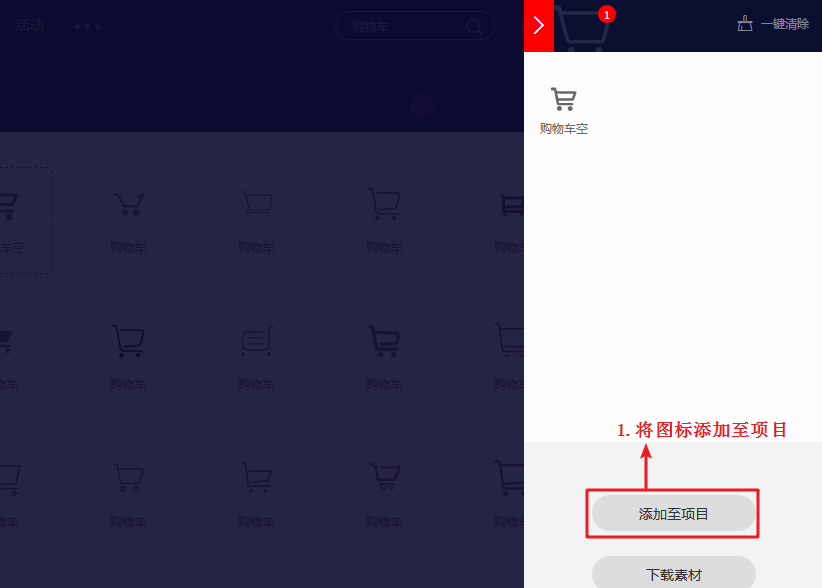 1.将需要的图标添加入库
