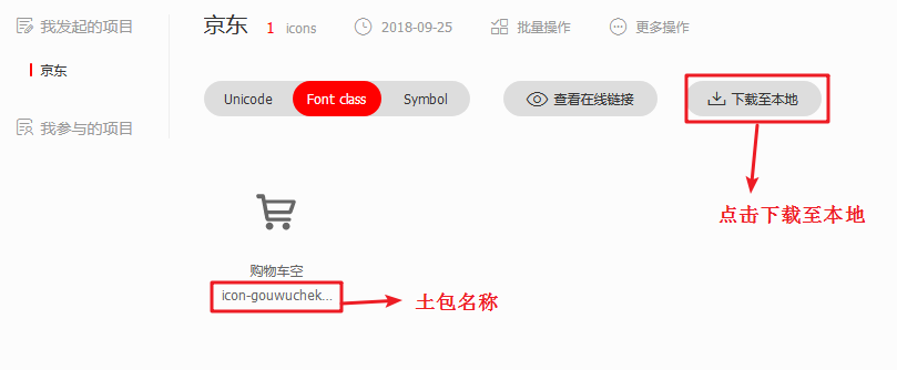 <i class="iconfont icon-gouwuchekong"></i><!-- 在标签中添加类名
