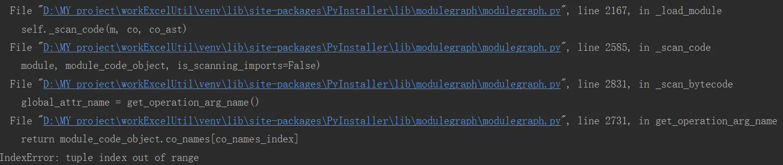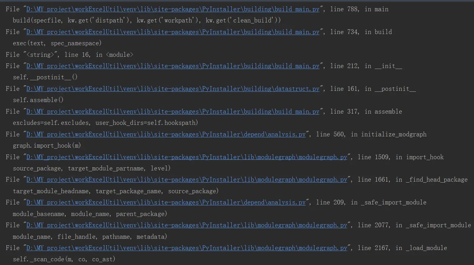 pyinstaller -F --clean -w -i excel.ico FileWindow.py很不幸,又报错了,这个方法并不管用: