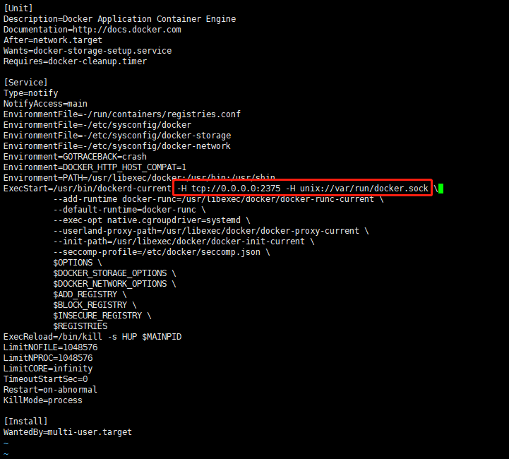 -H tcp://0.0.0.0:2375 -H unix://var/run/docker.sock