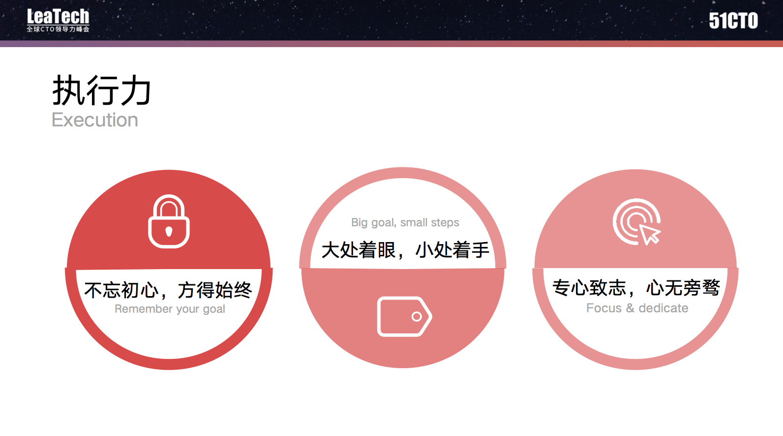 执行的时候要不忘初心,一步步地大处着眼、小处着手,小步快跑,快速迭代,及时反馈,及时调整,朝着设定的目标专心致志、心无旁骛。