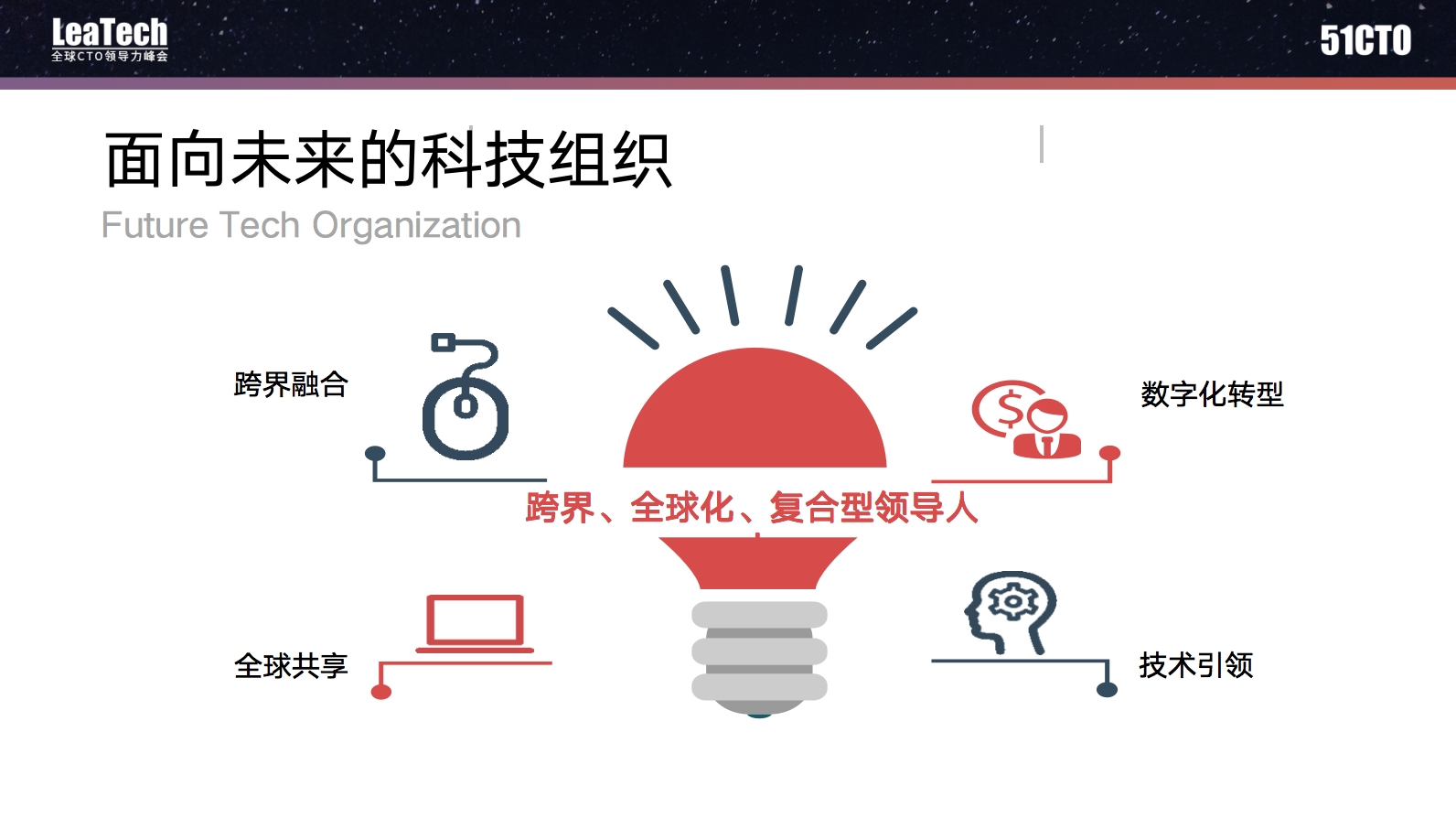 这样的科技团队需要跨界、全球化、复合型的领导人,只有既懂科技、又懂管理;既要懂业务,又懂行业的管理人才才能适合于领导面向未来的科技组织。