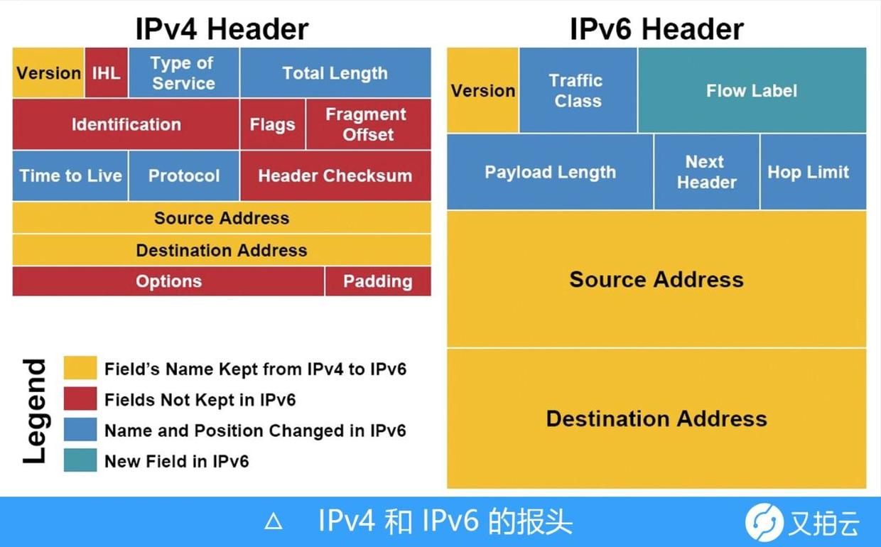 相比 IPv4 需要携带一堆冗长的数据,IPv6 的固定报头十分简短,能够有效提升网络数据转发效率。并且由于 IPv6 的路由表更小,聚合能力更强,保证了数据转发的路径更短,极大的提高了转发效率。