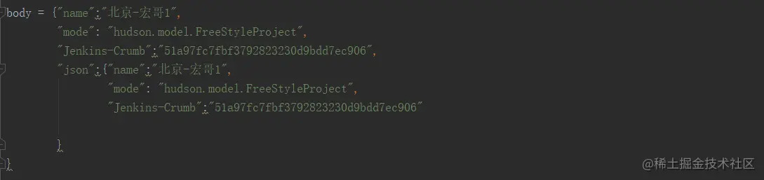 1 body = {"name":"北京-宏哥1",