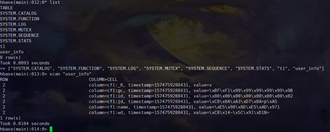 scat "user_info" #查看表数据
