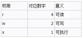 rwx:代表文件所有者(u表示)权限,这里是root,root对该文件拥有读写执行权限。