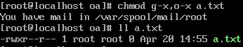 -rw-r--r-- 1 root root 0 5月 5 14:31 a.txt