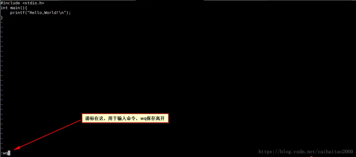 OK,我们要存档了,存盘并离开的指令很简单,输入:wq即可保存离开!
