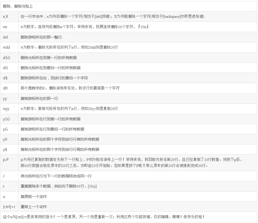 特别注意,在vi/vim中,数字是很有意义的!数字通常代表重复做几次的意思!也有可能是代表去到第几个什么的意思。