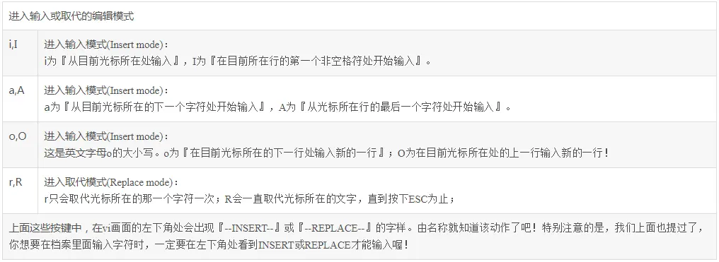在一般模式之中,只要按下i、o、a等字符就可以进入输入模式了!