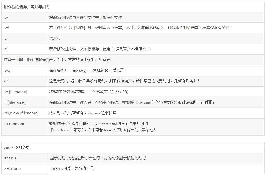 在底线命令模式中,基本的命令有(已经省略了冒号):