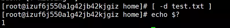 测试test.txt是否为目录类型,$?显示上一条命令执行后的返回值。如果返回值为 0,则目录存在;如果返回值为非零的值,则意味着目录不存在。