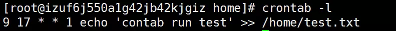 9 17 * * 1 echo 'contab run test' >> /home/test.txt