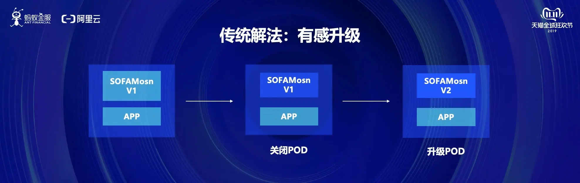 蚂蚁同样有这样的问题,内部有上千个系统,几十万台服务器,在业务迭代发展这么快的情况下,根本没有太多精力来配合进行基础设施的升级。而业务不动基础设施就动不了,很多能力就无法全局生效,这样就发挥不了威力。