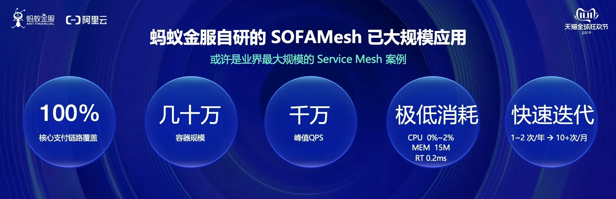 2018年双11,蚂蚁金服和网商银行正式应用云原生架构,2019年双11,蚂蚁金融级云原生架构进一步深入落地,Service Mesh 架构100%覆盖蚂蚁金服核心支付链路,是业界最大的 Service Mesh 集群。本文将分享蚂蚁金融级云原生在2019年双11中的大规模应用实践。
