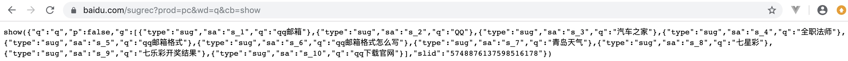 let url = `https://www.baidu.com/sugrec?prod=pc&wd=q&cb=show`