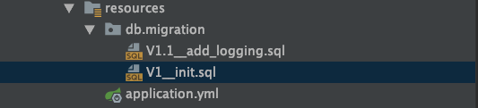 当我们启动项目时,会自动比对脚本的版本,在db.migration目录内找到V1.1__add_logging.sql为最高版本,拿着1.1再去flyway_schema_history表内执行成功最大的版本比对,如果低于1.1则自动执行V1.1_add_logging.sql脚本内容,否则跳过。