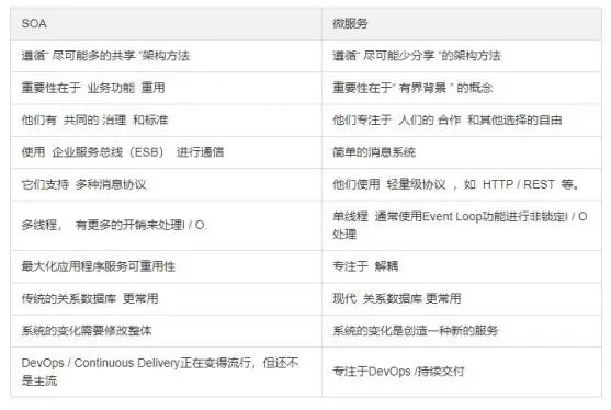 SOA 和微服务之间的主要区别如下: